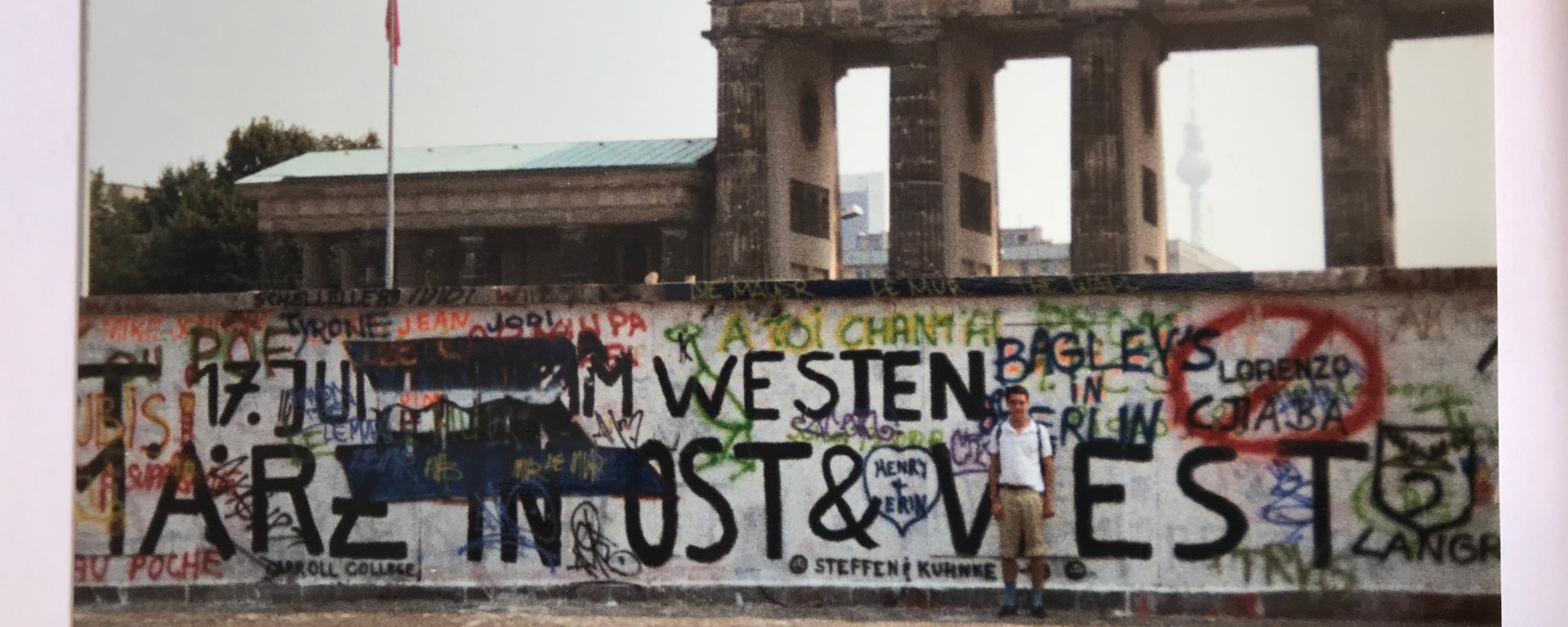 On the outskirts of Berlin the train rolled through a gap in the wall that the East Germans had built decades earlier to stop their citizens from fleeing. And then, after passing a phalanx of grey watchtowers and some fearsome barbed wire fences, we reached the enclave of West Berlin and everyone breathed a sigh of relief and started talking again.