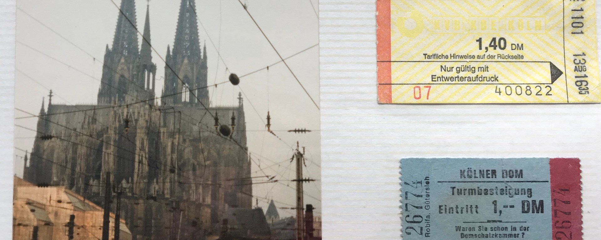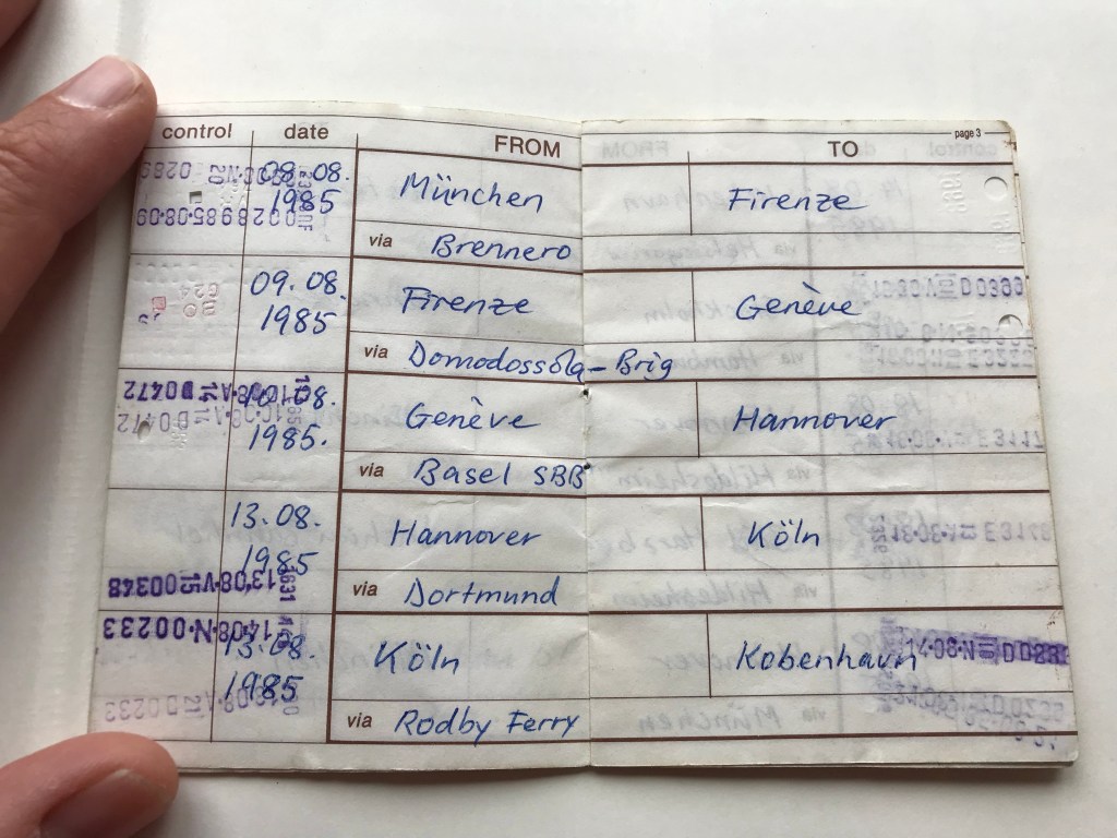 In 1985 (when I was not quite sixteen) I went on my first Interrail trip with my best friend Simon. The two of us crisscrossed Europe on a shoestring budget, sleeping on trains and at my grandmother’s flat in Hannover. My carefully preserved Interrail pass shows that we spent a day in Cologne before heading north to Copenhagen…