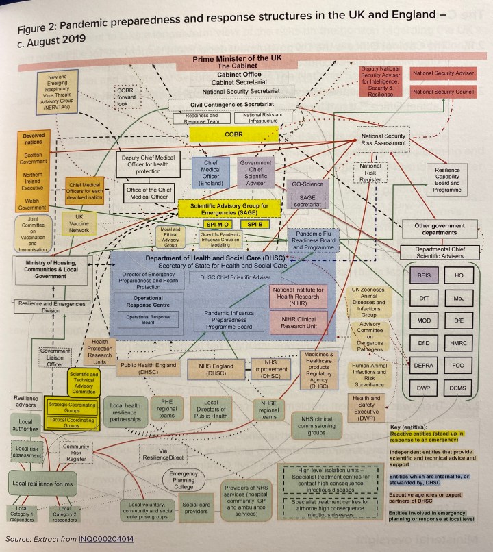 The famous “spaghettigram” was one of the first pieces of evidence I was asked to display. Created by the inquiry team to illustrate the complexity of the UK’s resilience architecture, it was a spider’s web of official bodies all rendered in the tiniest of tiny writing. With a bit of prep, I was able to take viewers round it with the help of my annotation tools – so everyone knew where we were and what we were talking about. One way I was able to add value to proceedings.